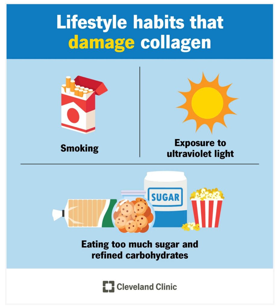 (Lifestyle habits that damage Collagen levels in the body, source Cleveland Clinic)